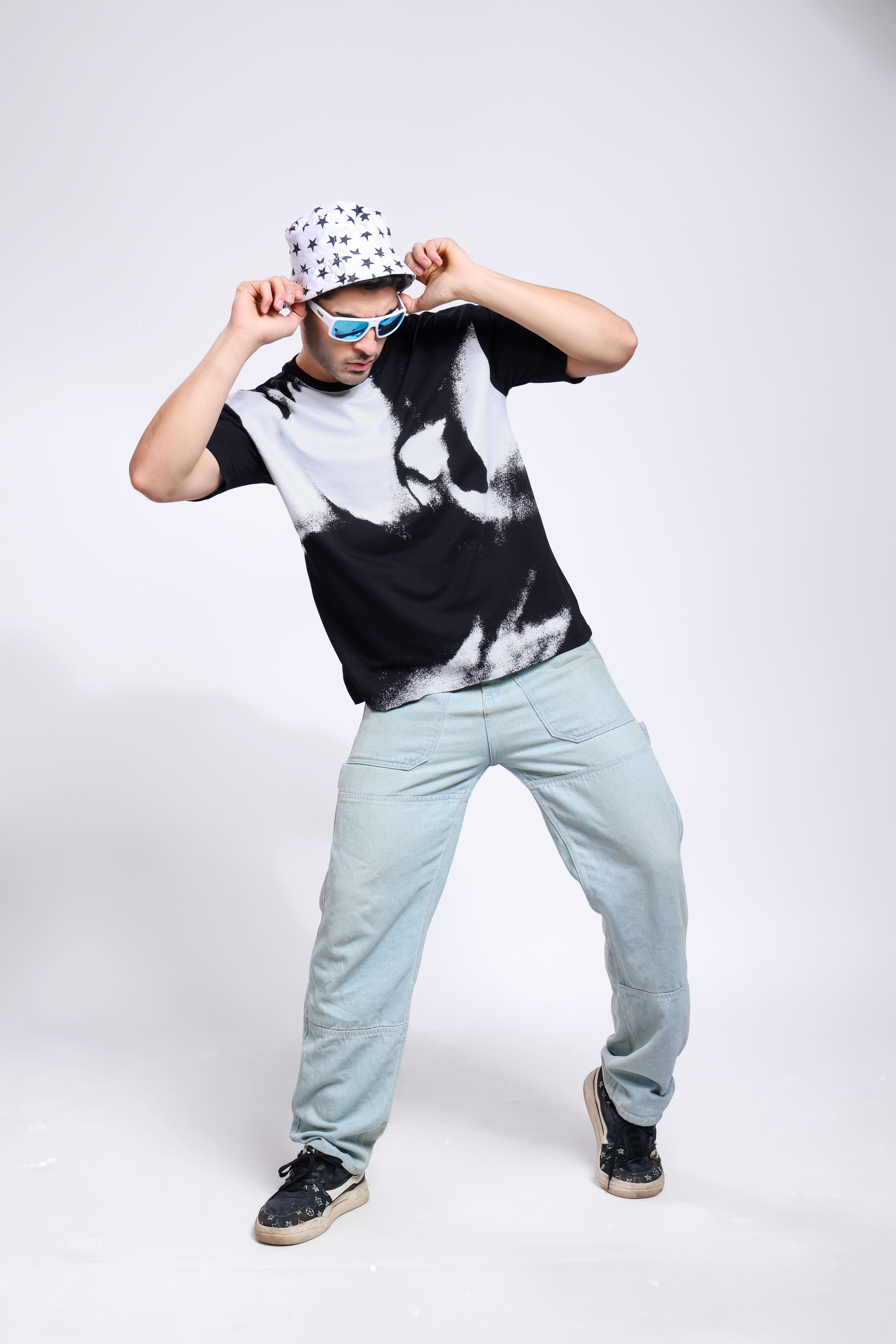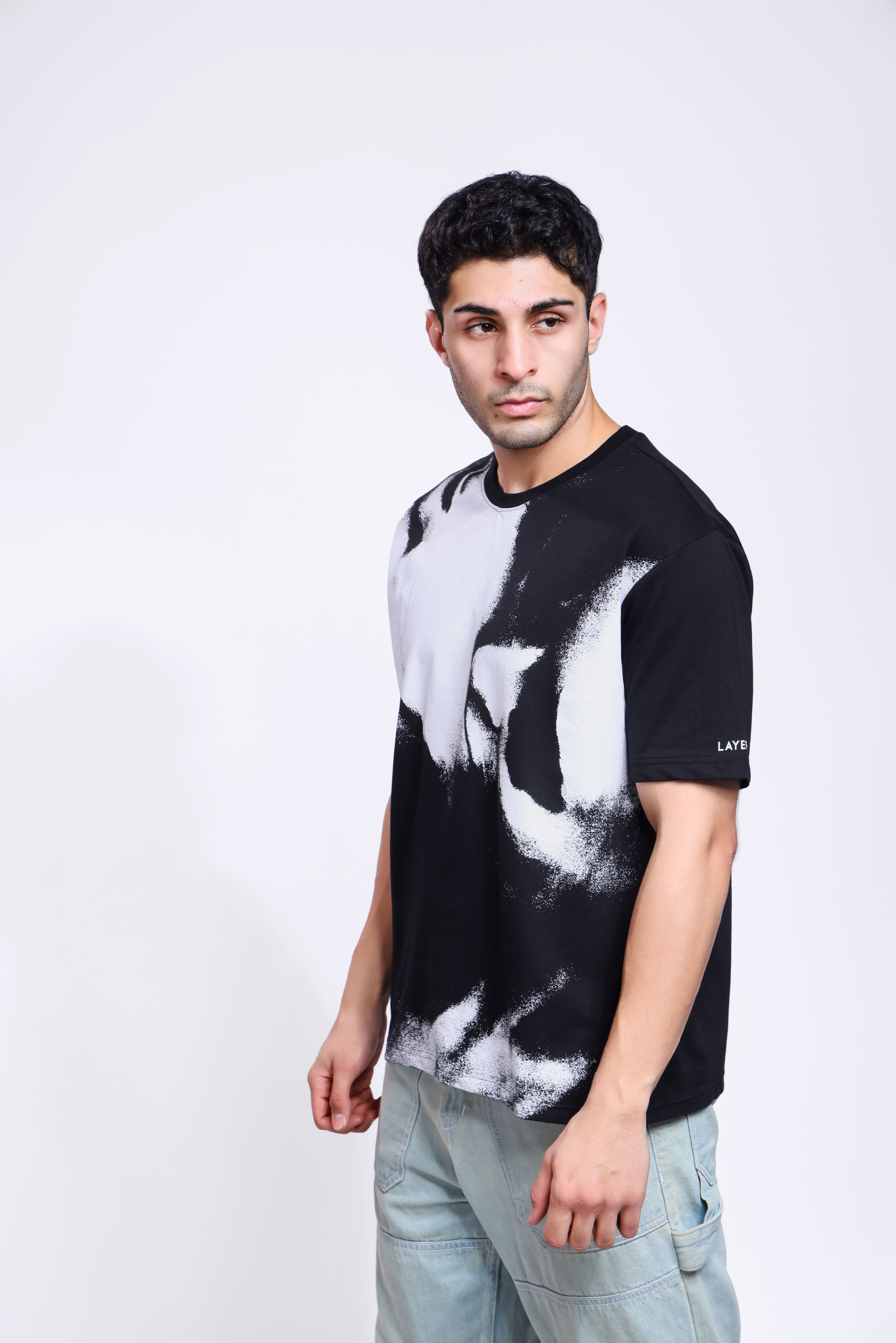 Men Printed Round Neck Pure Cotton Black T-Shirt