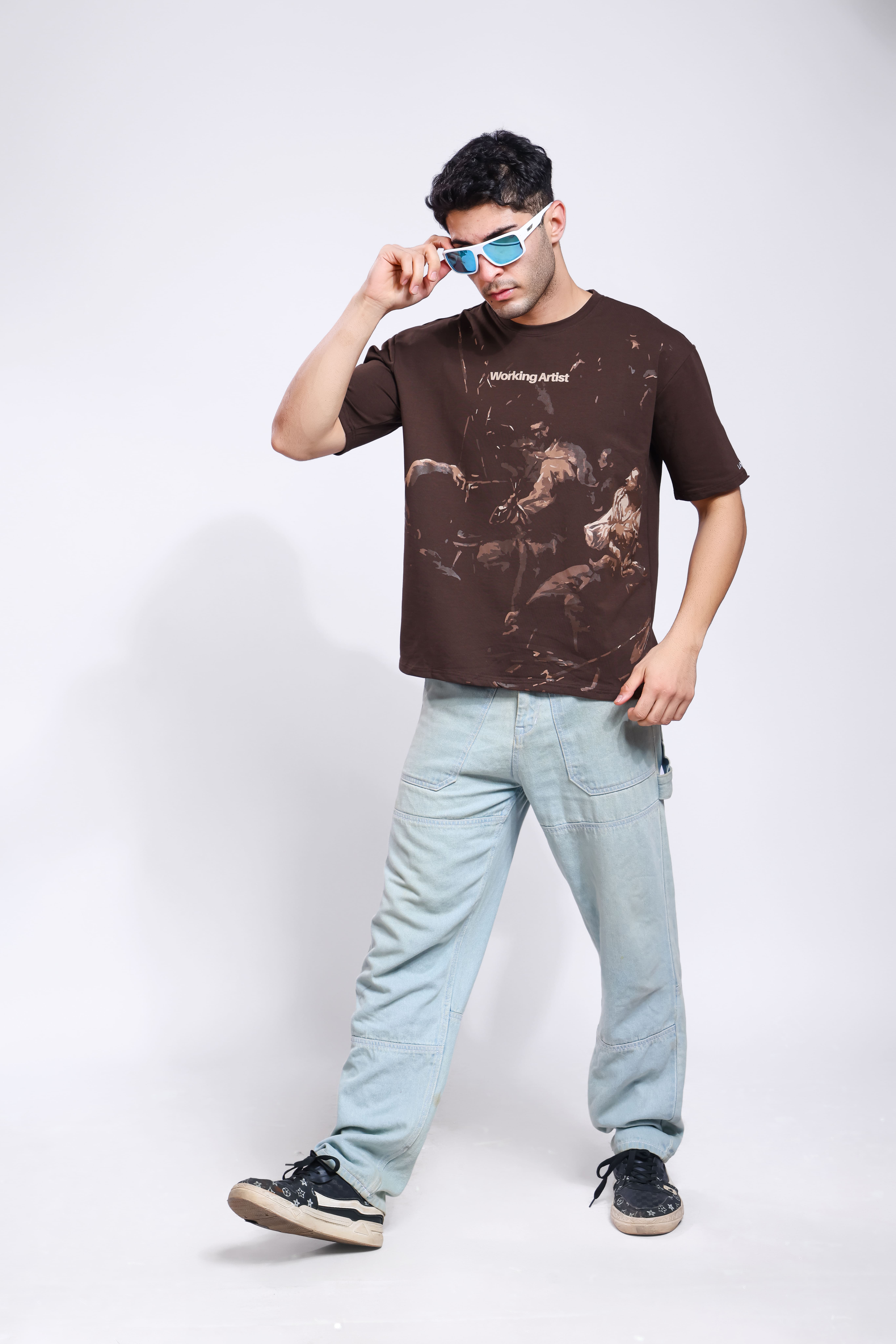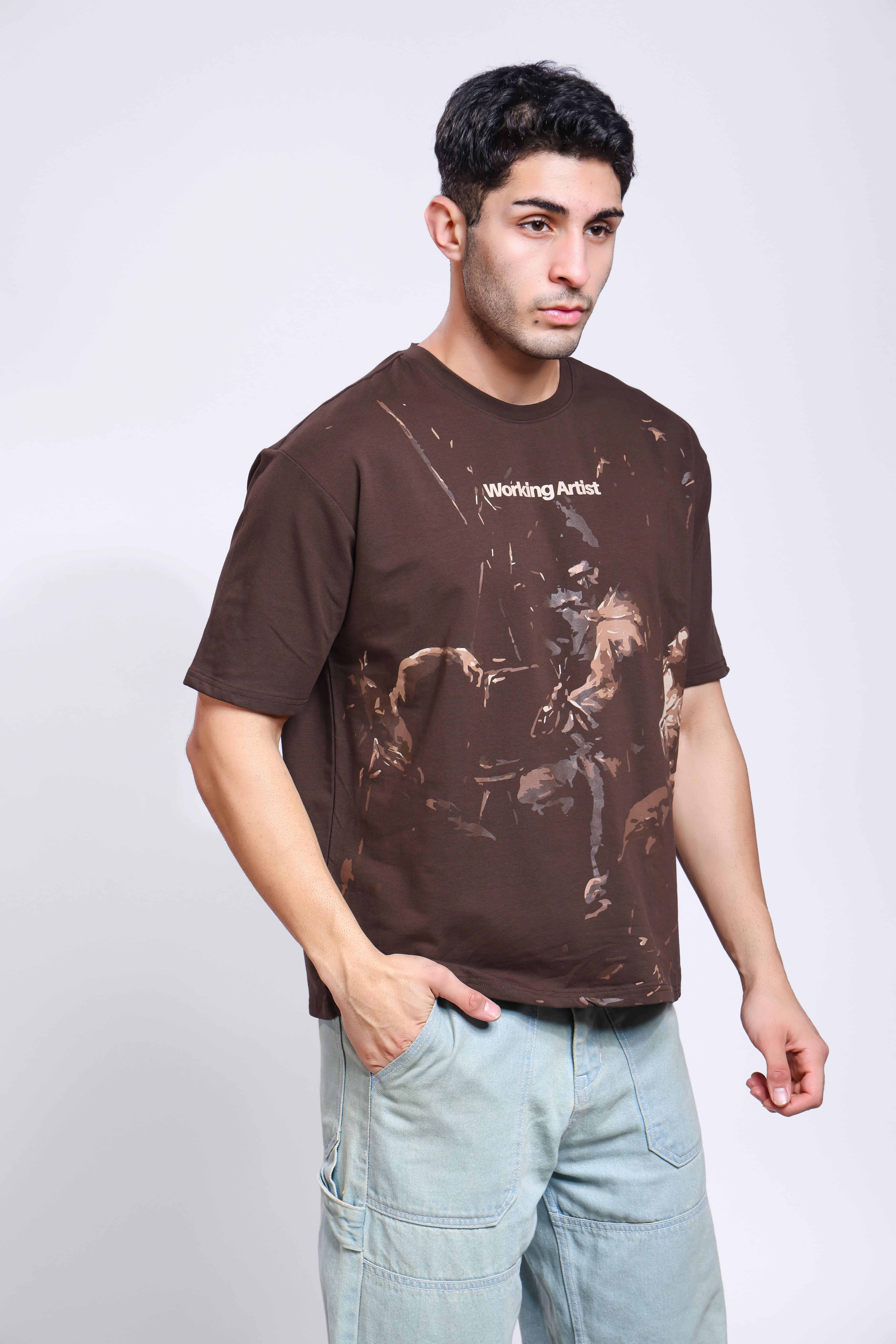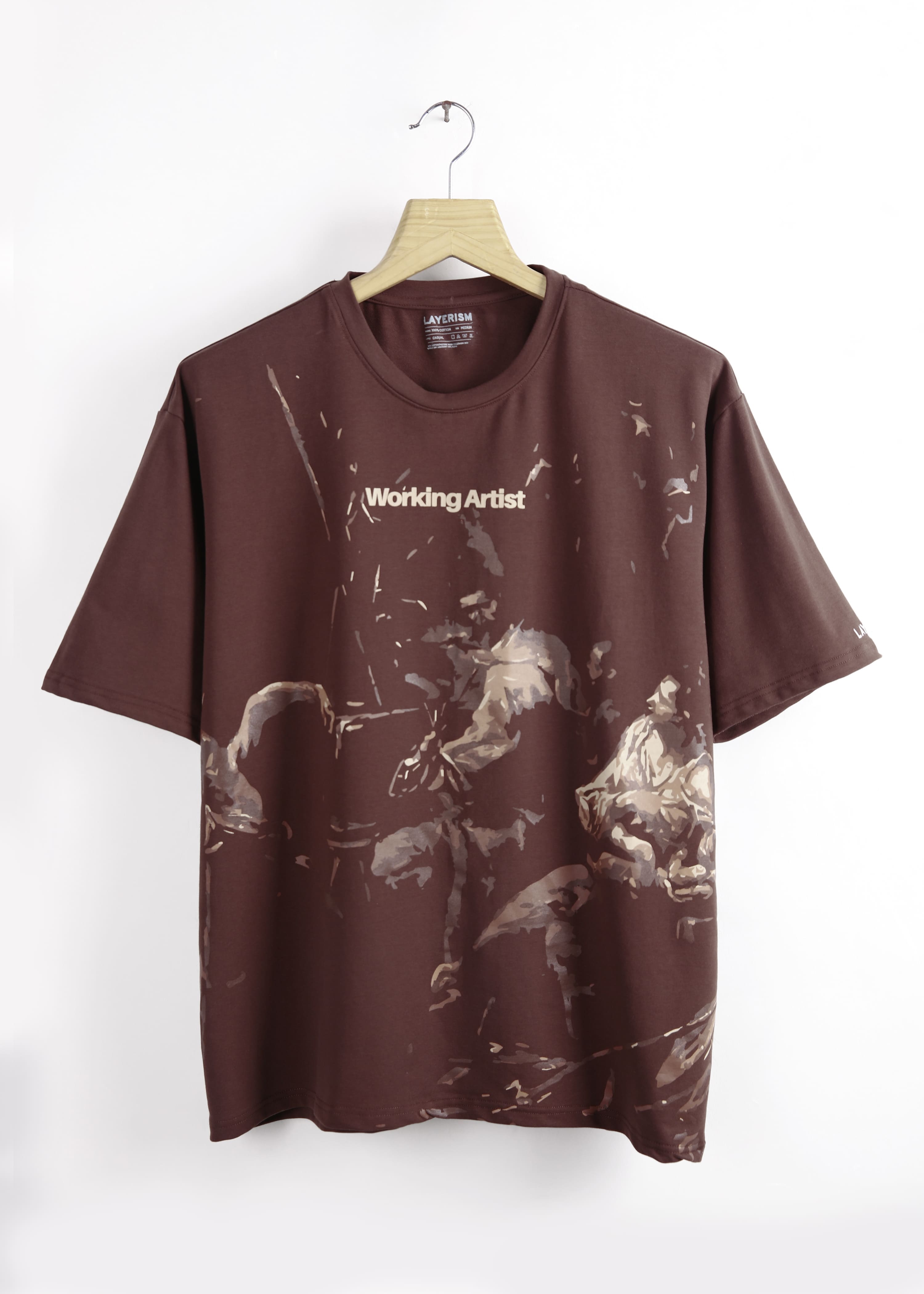 Men Printed Round Neck Pure Cotton Brown T-Shirt