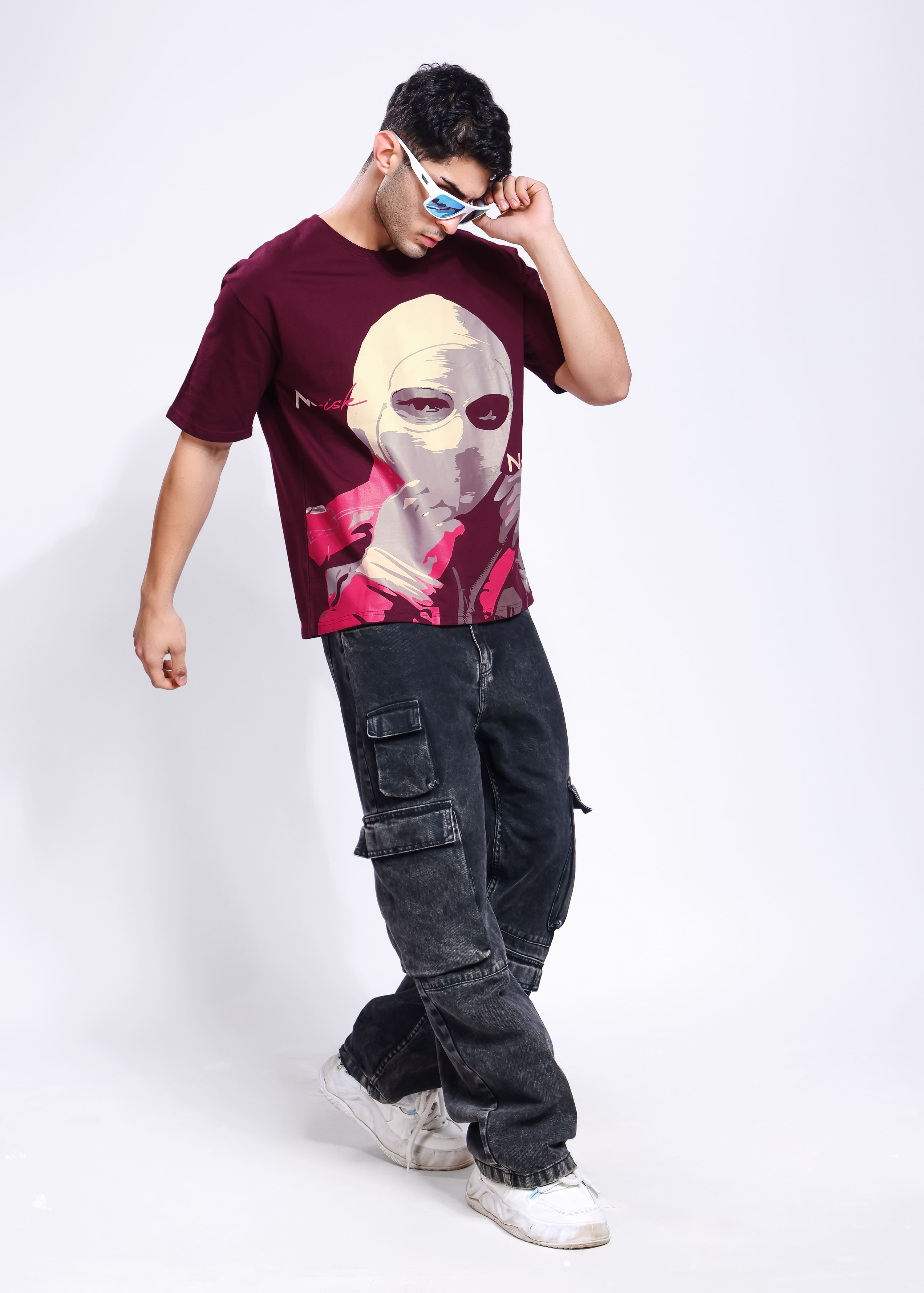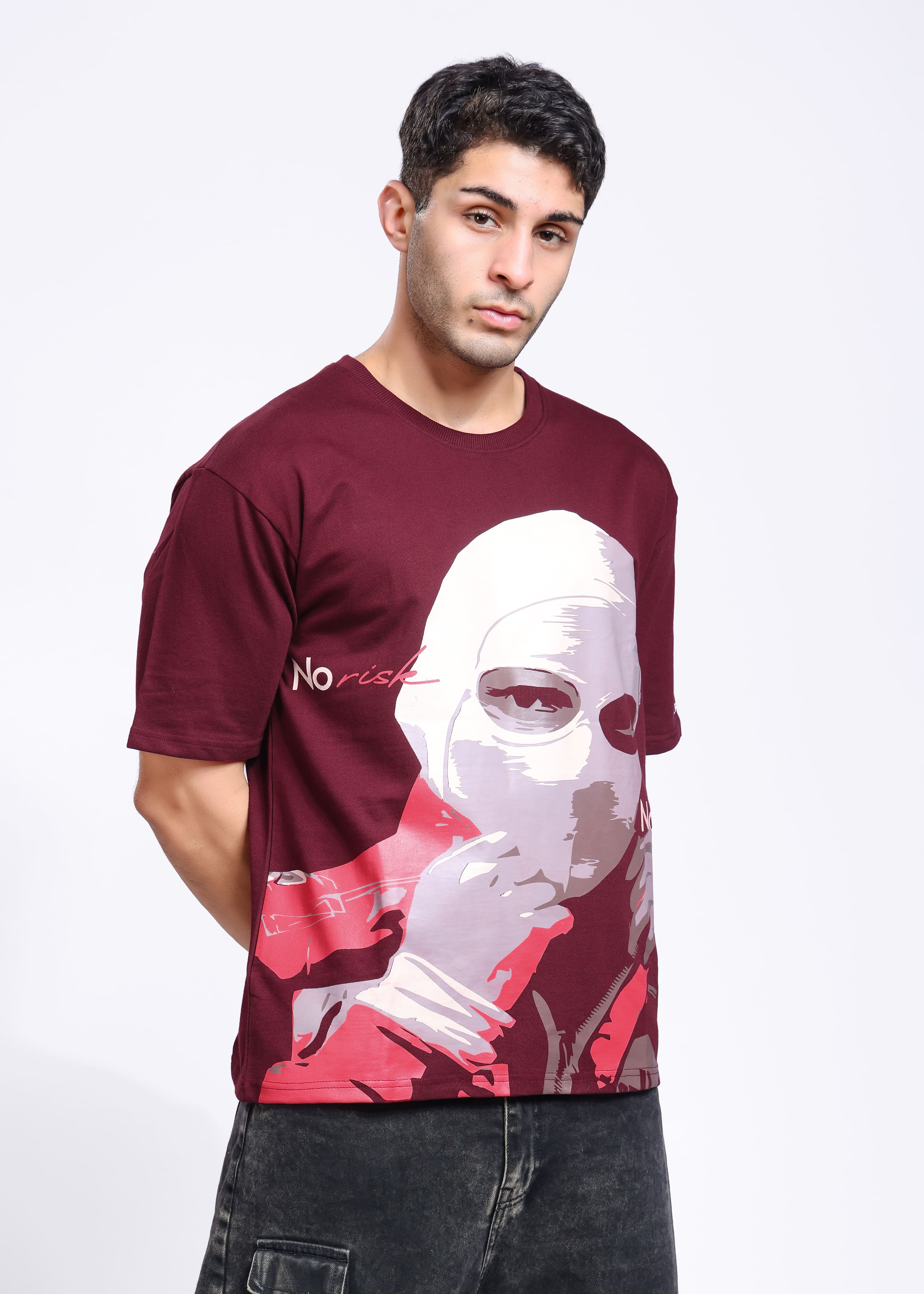 Men Printed Round Neck Pure Cotton Maroon T-Shirt