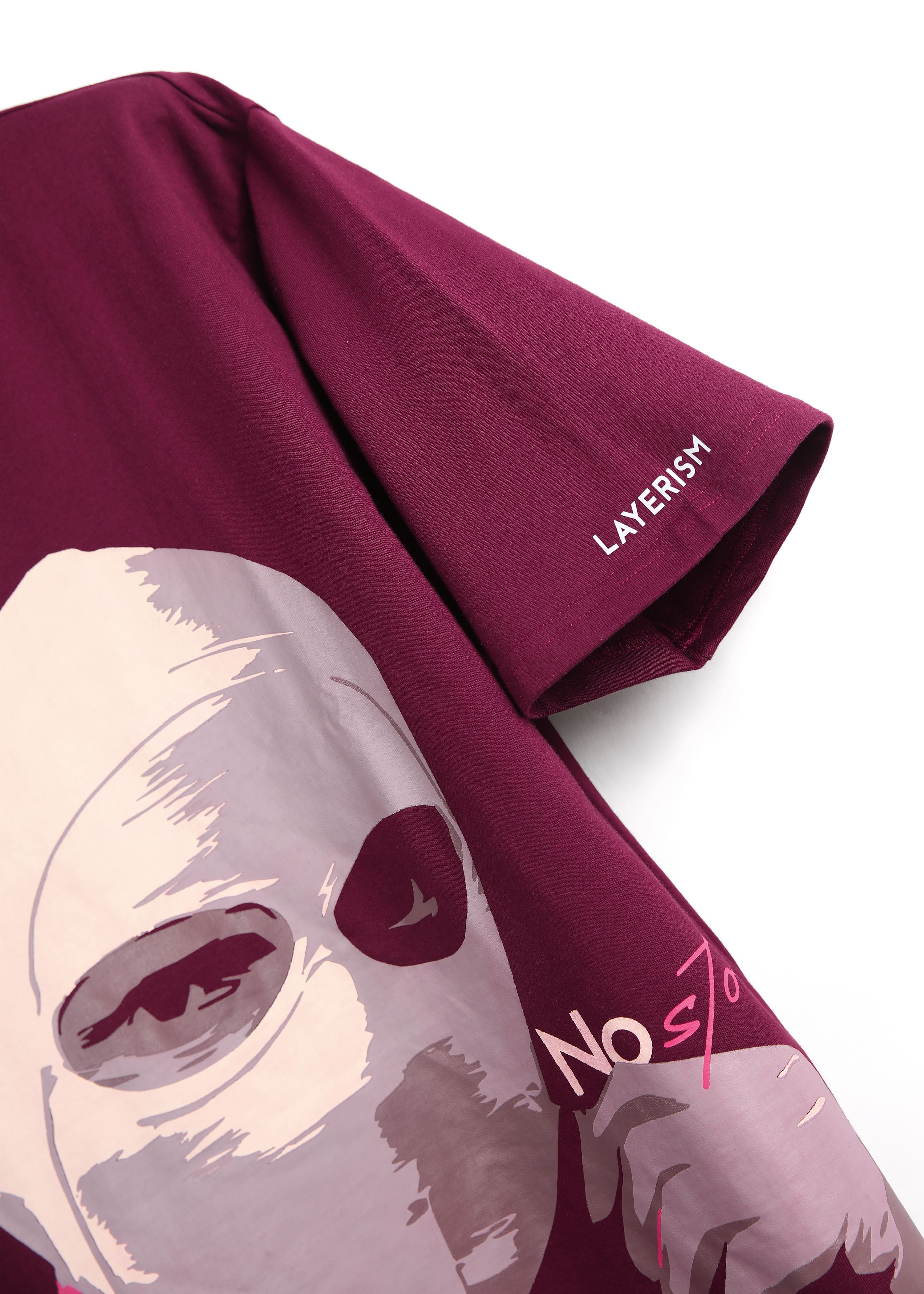 Men Printed Round Neck Pure Cotton Maroon T-Shirt